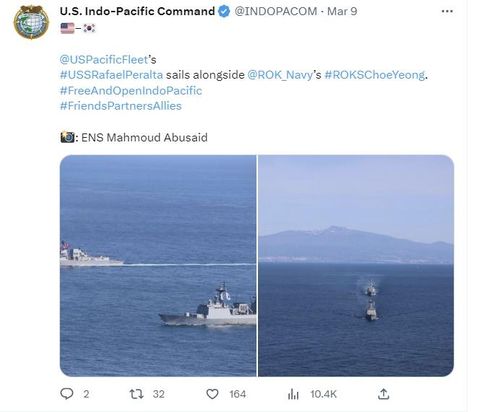 미 인태사 "라파엘 페랄타함, 韓 최영함과 나란히 항해" |