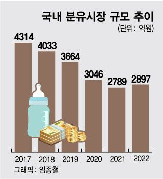 국내 분유시장 점유율 1, 2위를 다투는 업체 관계자의 얘기다. 지난해 합계 출산율 0.78명으로 세계 최저 수준을 기록하며 주력 수요층인 영유아 인구가 급감한 가운데 수입 분유 선호도가 높아져 매출액이 급감했기 때문이다.