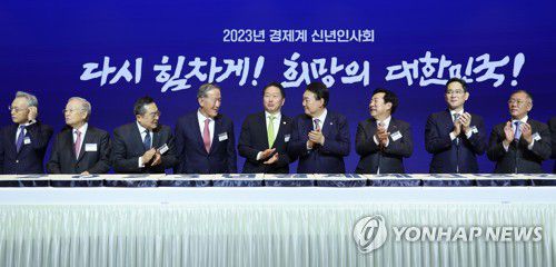 경제계 신년 인사회 참석한 윤석열 대통령과 재계 총수들 |