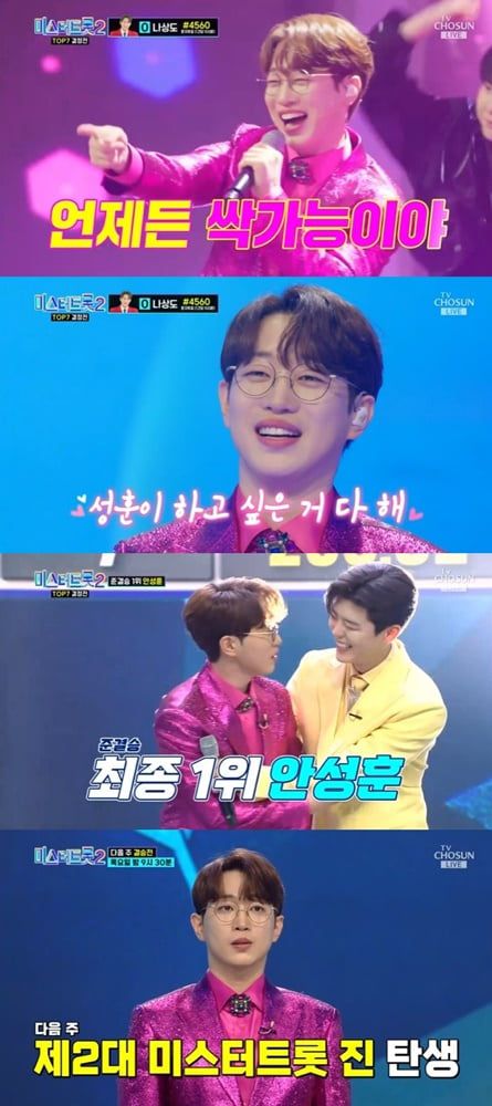 지난 9일 ‘미스터트롯2’ 준결승전이 생방송된 가운데, 결승전 티켓을 획득한 TOP 7 중 ‘쌈닭’ 안성훈의 실력 발휘에 관심이 쏠리고 있다.
