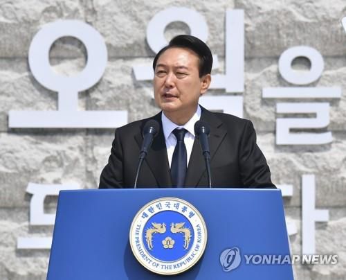 당시 기념사에서 윤 대통령은 "자유민주주의를 피로써 지켜낸 오월의 정신은 바로 국민통합의 주춧돌"이라며 "오월 정신을 확고히 지켜나갈 것"이라고 약속했다.