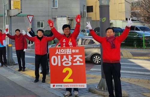 국민의힘 공천자인 이상조(52) 예비후보는 14일 아침 같은 당 김병국 청주시의회 의장의 지원 속에 금천새마을금고 앞 사거리 등지에서 거리 인사를 했다.