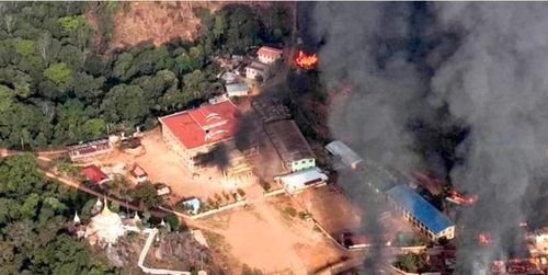 미얀마군 공격받아 불타는 마을 |