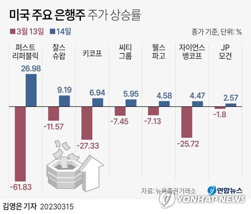 [그래픽] 미국 주요 은행주 주가 상승률 |