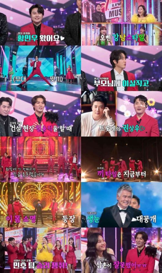 지난 14일 방송된 TV조선 '화요일은 밤이 좋아' 60회는 '끼 갑부 특집'으로 꾸며져 '미스터트롯2'의 황민우, 정민찬, 이찬성, 진웅, 최대성, 강태풍이 출연했다.