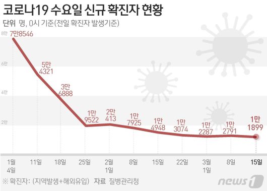 (서울=뉴스1) 김초희 디자이너 = 질병관리청 중앙방역대책본부(방대본)는 15일 0시 기준 신종 코로나바이러스 감염증(코로나19) 신규 확진자가 1만1899명 발생했다고 밝혔다.a_a@news1.krCopyright ⓒ 뉴스1. All rights reserved. 무단 전재 및 재배포 금지.