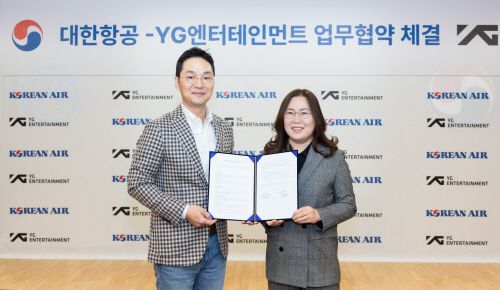 이번 협약은 글로벌 네트워크를 보유한 대한항공과 케이팝 문화를 선도하는 YG가 콘텐츠, 온오프라인 채널 등을 활용해 한국 문화를 전 세계적으로 확산하기 위해 마련됐다.