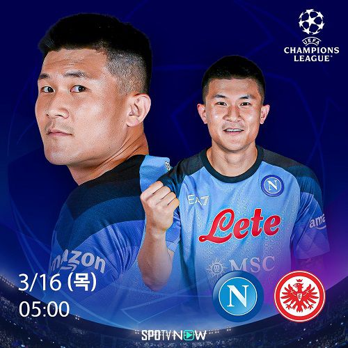 22-23 UCL 16강 2차전 나폴리 대 프랑크푸르트 경기는 16일 목요일 새벽 5시(이하 한국시간) 스포티비 온(SPOTV ON)과 스포티비 나우(SPOTV NOW)에서 독점 생중계된다.