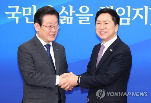 악수하는 여야 대표 |