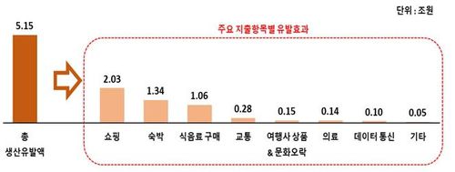 항목별로 보면 쇼핑 2조300억원, 숙박 1조3천400억원, 식음료 구매 1조600억원, 교통 2천800억원 등이다.
