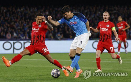 나폴리 중앙 수비수로 선발로 출전한 김민재는 이번 경기에서도 프랑크푸르트 미드필더 가마다와 한일 맞대결을 펼치게 됐다.
