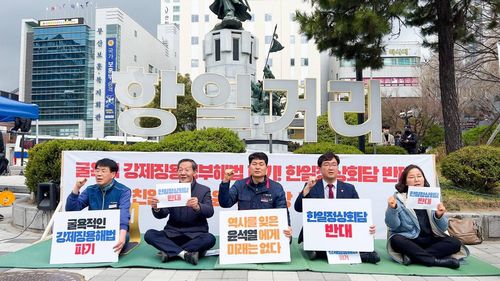 그러면서 "한일정상회담을 반대하고 강제징용해법 철회를 요구하는 부산시민의 뜻을 대변해 농성에 돌입하게 됐다"면서 "농성은 정상회담이 끝나는 금요일까지 할 예정"이라고 전했다.