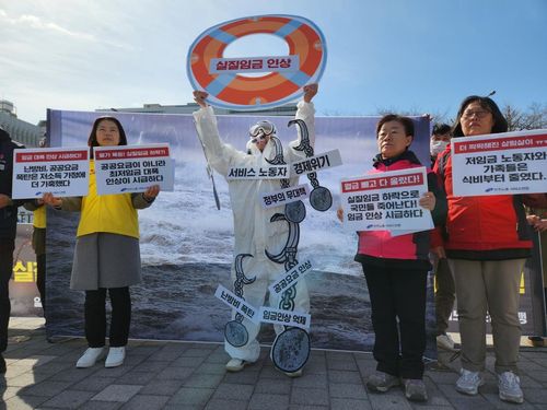 서비스연맹은 "고물가·고금리로 고통받는 노동자의 실질임금을 대폭 인상해야 한다"며 "최저임금 노동자에게는 최저임금 인상이 유일한 해결책"이라고 주장했다.