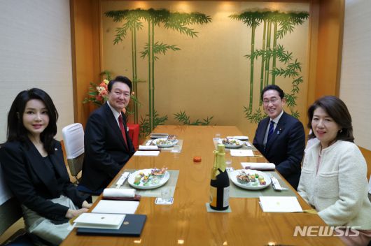 김성한 국가안보실장은 "이번 만찬은 양 정상 부부간의 친밀감을 높인다는 목적으로 기시다 총리가 직접 장소를 선정해 초청했다"고 취재진에 말했다.