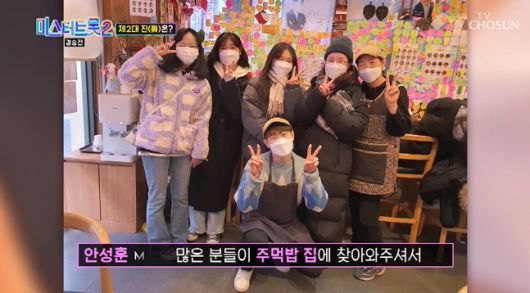 노래에 앞서 안성훈은 “2012년에 데뷔했는데 1년 반 만에 가수를 관뒀다. 막상 시작해 보니 현실적인 문제에 많이 부딪히고 전혀 수입이 없었다. 그래서 어머니와 주먹밥집을 했다. ‘미스터트롯’ 시즌 1이 끝나고 많은 분이 찾아와 주셔서 응원 메시지와 쪽지를 사 와서 ‘힘내세요’를 적어두고 가셨다”고 고백했다.