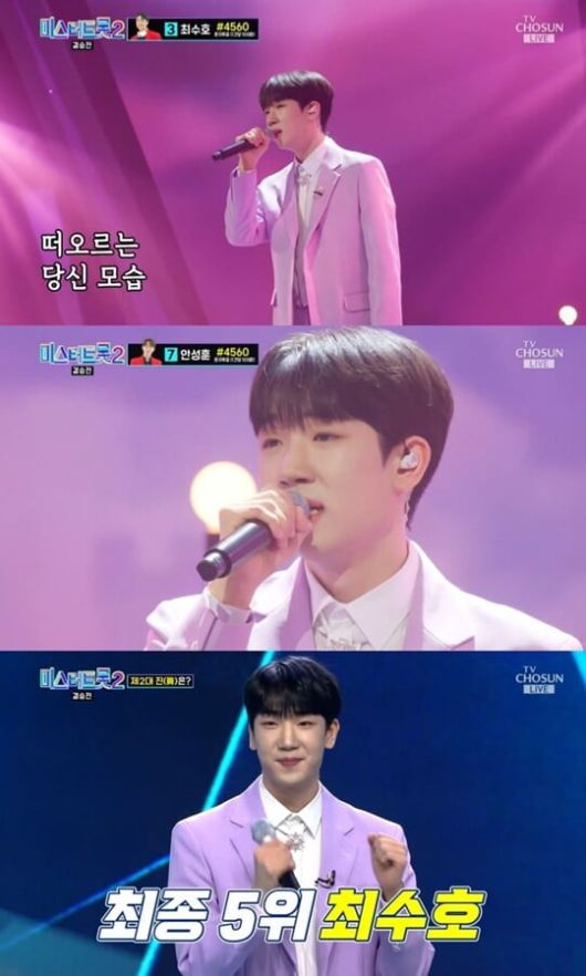 아버지를 향한 진심을 담은 열창으로 레전드 무대를 선사한 최수호는 마스터 점수와 실시간 문자 투표 점수를 합산한 총점 2445.05점으로 최종 5위에 등극했다.