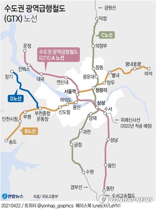GTX 사업은 서울시와 경기도 주요 거점역을 잇는 광역급행철도를 건설해 수도권 교통혼잡 완화 및 수도권 경쟁력을 강화하려는 목적으로 추진됐다. 정부는 2027년 완공을 목표로 GTX A노선(운정~동탄), B노선(송도~마석), C노선(덕정~수원) 일부를 착공한 상태다. 하지만 노선 결정을 두고 지역주민들의 관련 민원이 잇따라 일부 구간의 사업이 지연됐다.