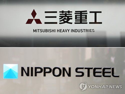 미쓰비시중공업(위)과 일본제철 본사 간판 |