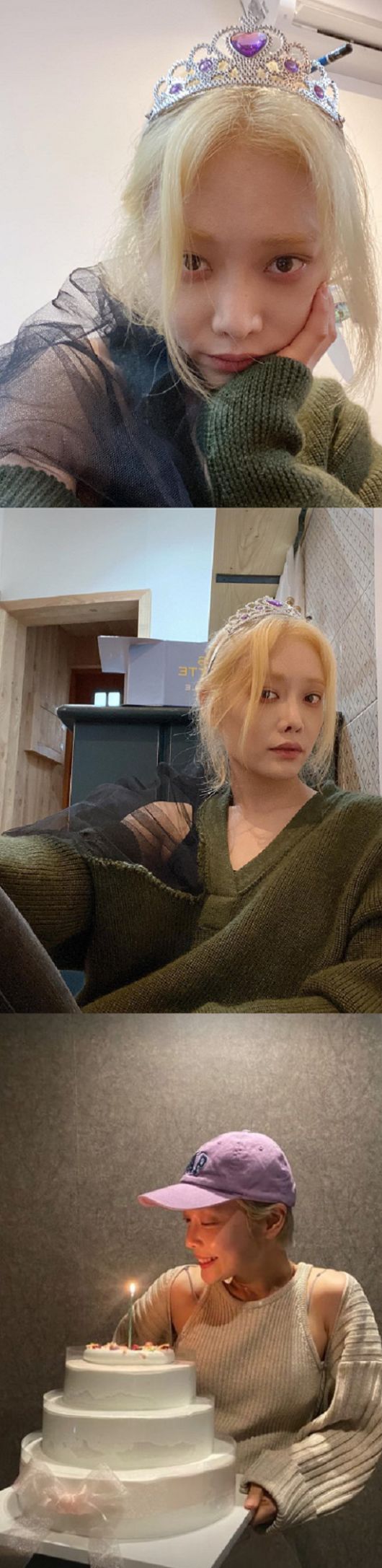 공개된 사진 속 김히어라는 탈색모와 탈색 된 눈썹을 자랑하며 미모를 뽐내 눈길을 끌었다. 그는 장난감 왕관을 쓴 채 생일을 축하하고 있다.