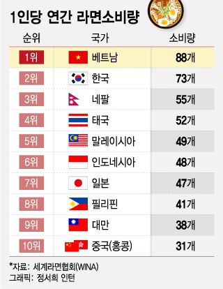 K라면의 주요 수출국은 중국, 미국, 일본이다. 지난해 기준 중국이 1억8892만달러(약 2500억원)로 전세계 수출물량의 24.6%를 차지한다. 뒤이어 미국이 7616만달러, 일본이 6062만달러로 3강을 형성한다.