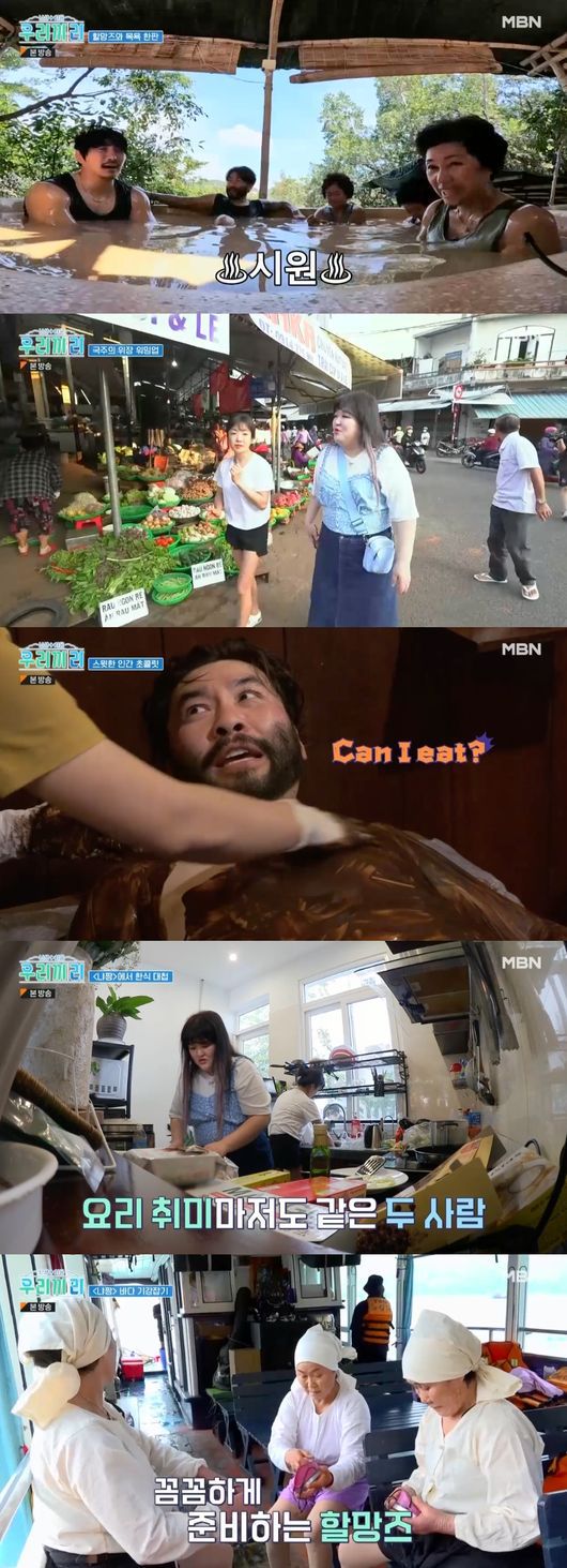 아침을 든든하게 먹은 이들은 단체로 호핑 투어에 나섰다. 바다에 나가서 낚시도 하고 물에도 들어가고 먹기도 하는 호핑 투어에 해녀들은 설렘을 드러냈다. 옛날 해녀옷까지 단단하게 입고 물에 들어간 해녀들은 바다 속을 자유자재로 헤엄치며 다른 여행객들의 놀라움을 자아냈다.