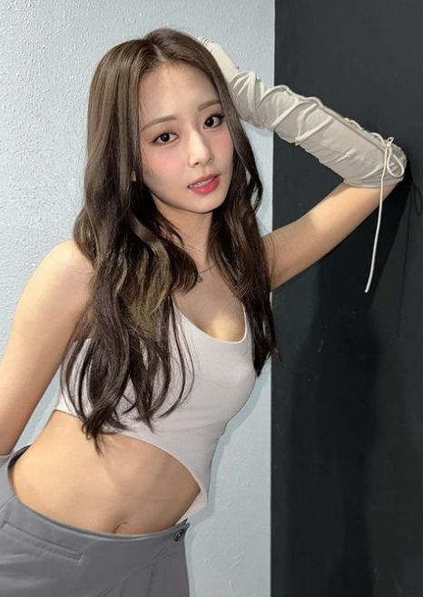 그룹 트와이스 멤버 쯔위가 크롭탑 차림으로 늘씬한 개미허리를 뽐냈다.