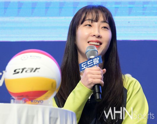 임명옥을 대신해 참석한 배유나는 "우리 팀은 베테랑이 많아 쉽게 지지 않는 법을 알고 있다, 그 방법을 통해 봄배구에 올 수 있었다"며 미소를 지었다.