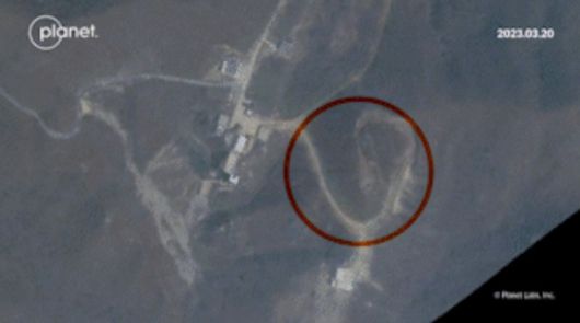 [서울=뉴스핌] 이영종 통일전문기자 =미 상업위성 '플래닛 랩스(Planet Labs)'가 20일 촬영한 동창리 미사일 발사대 모습. 19일 발사로 주변 지역이 화염에 그을린 모습이 드러난다. [사진-RFA] 2023.03.21 yjlee@newspim.com |
