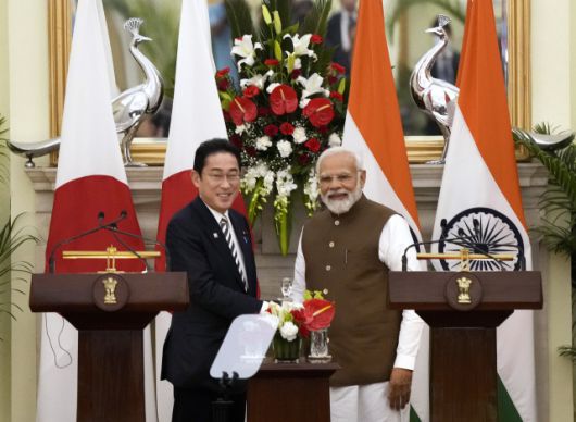 기시다 후미오 일본 총리가 20일(현지 시간) 나렌드라 모디 인도 총리와 만나 ‘자유롭고 열린 인도태평양(FOIP)’ 전략의 구체적인 계획을 발표했다. 인도태평양 지역에 750억 달러(약 98조 원) 이상의 자금을 투입하는 내용이 골자다. 이번 회담에서 기시다 총리는 올해 주요 7개국(G7) 의장국 자격으로 5월 히로시마에서 열리는 G7 정상회의에 모디 총리를 초대하며 인도와의 협력 의지를 다졌다.