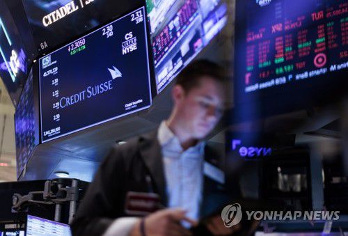 뉴욕증권거래소 객장에 떠 있는 크레디트스위스 주가 |