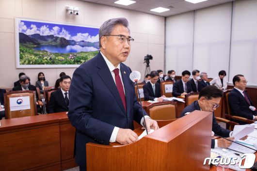 박진 외교부 장관이 21일 서울 여의도 국회에서 열린 제404회 국회(임시회) 외교통일위원회 제2차 전체회의에서 현안보고를 하고 있다. 2023.3.21/뉴스1 ⓒ News1 유승관 기자 |