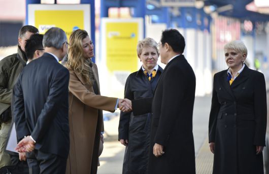 이날 키이우역에서 기시다 총리를 환대한 에미네 제파르 우크라이나 외교부 제1차관은 트위터에서 “기시다 총리를 환영한다”며 “이 역사적 방문은 양국 결속과 견고한 협력 관계의 상징”이라고 말했다. 그는 일본어로 “환영합니다(ようこそ)”란 말도 남겼다. 마츠다 쿠니노리(松田邦紀) 주우크라이나 일본 대사도 키이우역에서 기시다 총리를 맞이했다.