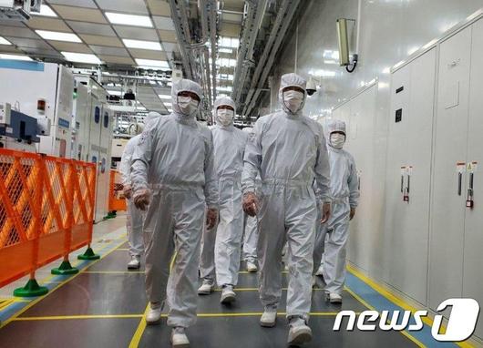 이재용 삼성전자 부회장이 지난 2020년 5월 중국 시안(西安)의 낸드플래시 메모리 반도체 생산공장을 방문, 생산라인을 살피고 있는 모습. (삼성전자 제공) 2020.5.18/뉴스1 |