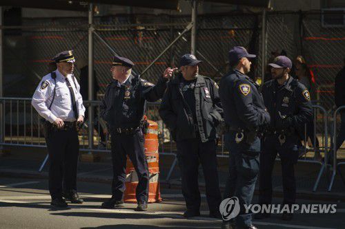 뉴욕시 지방법원 인근에서 대기 중인 경찰관들 |