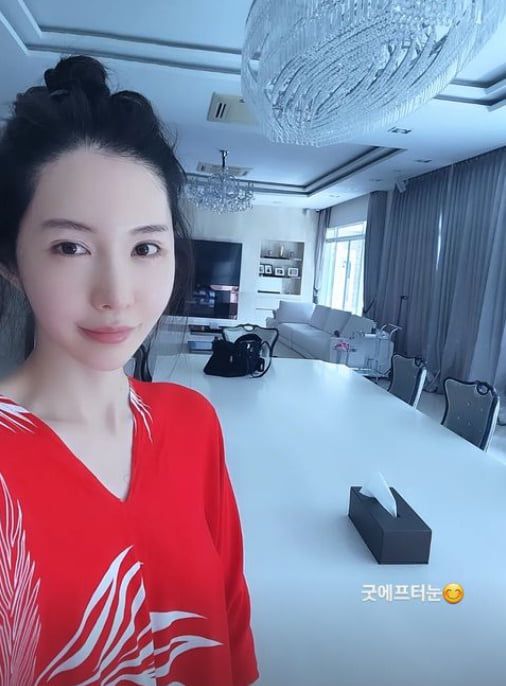 사진 속 거실에서 신주아가 셀카를 찍고 있다.
