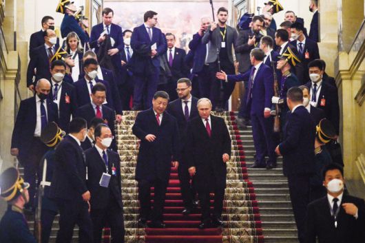 시진핑 중국 국가주석과 블라디미르 푸틴 러시아 대통령이 21일(현지시간) 정상회담에서 각국의 영토보전을 지지한다며 대만과 우크라이나 문제에 대한 공조를 약속했다. 미국을 향해 “세계의 안정을 해치는 행위를 중단하라”면서 반미연대의 결속을 재확인했다.