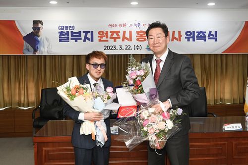 (원주=연합뉴스) 이재현 기자 = 장애인 트로트 가수 철부지(본명 김형천·36)가 강원 원주시 홍보대사가 됐다.
