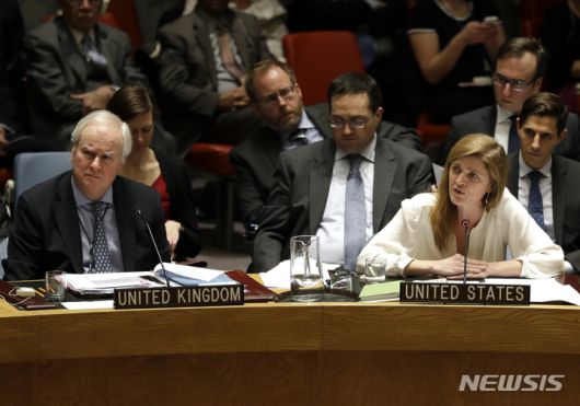 [유엔본부=AP/뉴시스]북한의 열악한 인권상황을 논의하는 유엔 안전보장회의에서 사만사 파워 유엔 주재 미국대사(오른쪽)가 발언하고 있다. 2014.12.22. |