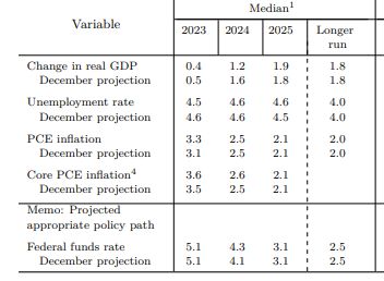 ② “경제전망에서 보듯 상대적으로 느린 성장과 점진적인 노동시장 균형, 인플레이션 하락이 천천히 이뤄진다면 올해 금리인하는 없다는 게 위원들의 생각이다. 금리인상 중단 후 금리인상이 필요하다면 그렇게 할 것이다”→해석: 지금의 인플레이션 하락세와 노동강세가 이어진다면 올해 금리인하 없음. 상황에 따라 추가 인상도 가능. 이는 금리인하를 생각한 시장과 괴리. 증시 하락 배경 가운데 하나.