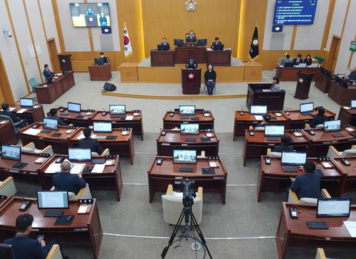 이에 대해 박 의장은 "지난 8대 시의회 때 정치적 발언에 대해서는 여야 원내대표 협의를 거치도록 하는 암묵적 내규가 다수당이던 민주당의 주도로 만들어졌다"며 "그런 정신에 따라 여야 합의를 요구한 것인데 등원 거부로 맞선 민주당에 강한 유감을 표한다"고 말했다.