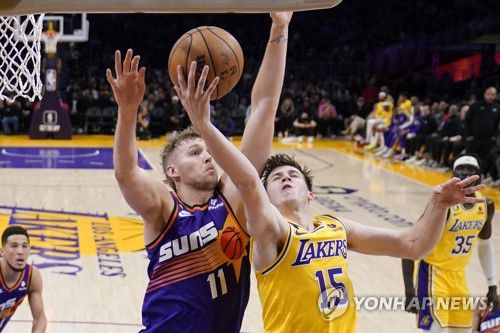 (서울=연합뉴스) 이의진 기자 = 오스틴 리브스가 25점 11어시스트로 맹활약한 미국프로농구(NBA) 로스앤젤레스(LA) 레이커스가 피닉스 선스를 잡고 플레이오프(PO)를 꿈꿀 수 있는 10위로 다시 올라섰다.