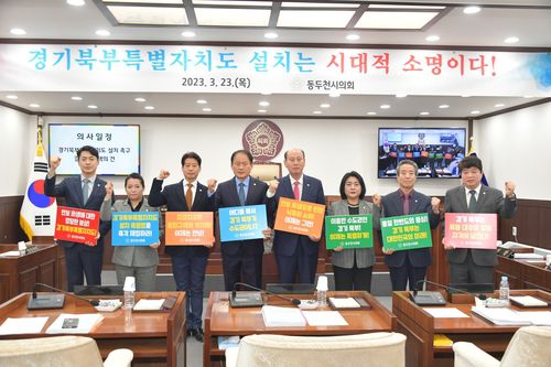 (동두천=연합뉴스) 우영식 기자 = 경기 동두천시의회는 23일 제319회 임시회에서 '경기북부특별자치도 설치 촉구 결의문'을 만장일치로 채택했다고 밝혔다.
