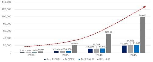 구체적으로는 2045년 ▲수산화리튬 2만톤 ▲황산망간 2만1000톤 ▲황산코발트 2만2000톤 ▲황산니켈 9만8000톤가량을 전기차 폐배터리 재활용으로 회수할 수 있을 것으로 보인다. 이는 해당원료의 작년 수입량 대비 28%, 41배, 25배, 13배에 수준이다.