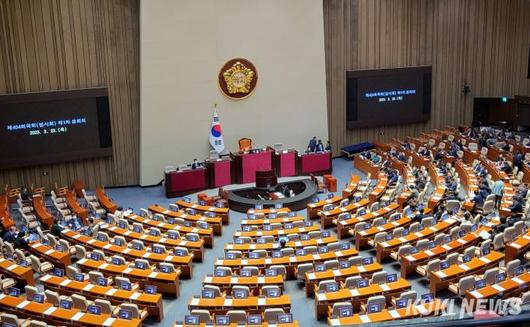 여야는 23일 오후 국회에서 본회의를 열고 양곡관리법 개정안을 재석 266명 중 찬성 169명, 반대 90명, 기권 7명으로 가결했다.