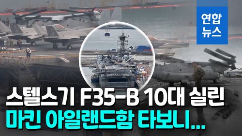 이날 언론에 공개된 마킨 아일랜드함에는 스텔스 전투기 F-35를 미 해병대용으로 제작한 F-35B가 1대 대대 규모인 10대 탑재됐습니다. 미국이 F-35B 1개 대대를 마킨 아일랜드함과 전개한 것은 이번이 처음이라고 하는데요.