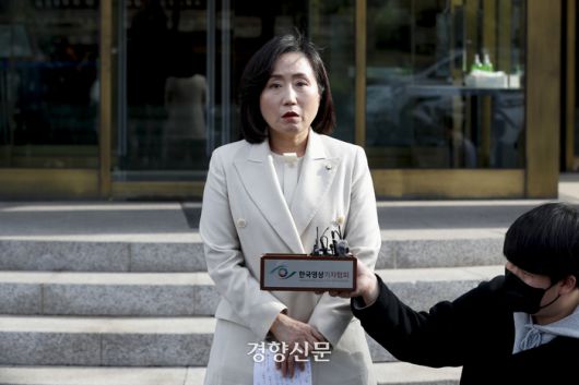 헌법재판소가 지난해 국회 본회의를 통과한 ‘검수완박’(검찰 수사권 완전 박탈)법에 대해 표결 과정에서 위헌적 요소는 있었지만 최종적으로 무효는 아니라는 판결을 내린 지난 23일 서울 헌법재판소 앞에서 전주혜 국민의힘 의원이 입장을 밝히고 있다. |