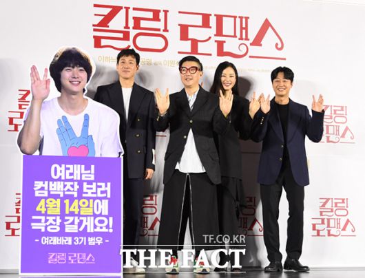 [더팩트ㅣ이새롬 기자] 배우 이선균과 이원석 감독, 이하늬, 배유람(왼쪽부터)이 24일 서울 광진구 롯데시네마 건대점에서 열린 영화 '킬링 로맨스' 제작보고회에 참석해 포즈를 취하고 있다.
