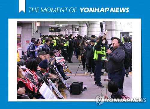 (서울=연합뉴스) 류영석 기자 = 24일 오전 서울 지하철 시청역 승강장에서 전국장애인차별철폐연대(전장연) 관계자들이 선전전을 하고 있다. 2023.3.24 [THE MOMENT OF YONHAPNEWS] ondol@yna.co.kr ▶제보는 카카오톡 okjebo▶연합뉴스 앱 지금 바로 다운받기~▶네이버 연합뉴스 채널 구독하기 <저작권자(c)연합뉴스. 무단전재-재배포금지.>