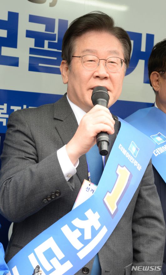 [울산=뉴시스] 배병수 기자 = 이재명 더불어민주당 대표가 24일 오후 울산 남구 수암시장 사거리에서 울산 남구 나 기초위원 보궐선거 민주당 최덕종 후보자 지원유세를 하고 있다. 2023.03.24. bbs@newsis.com.