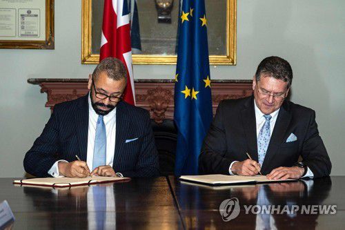 영국 제임스 클리버리 외무부 장관과 EU 마로스 세프코비치 부집행위원장은 24일(현지시간) 런던에서 만나 '윈저 프레임워크'에 서명했다.